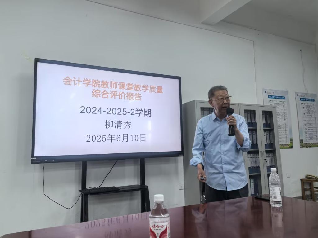 教学督导组柳教授首先对本学期的督导工作进行了总结,详细汇报了听课评课、教学文档检查、师生座谈等方面的督导情况。督导组充分肯定了学院教师在教学内容、教学方法及课堂管理上的亮点,同时针对个别课程的教学设计、师生互动、实践教学环节等提出了中肯的改进建议。