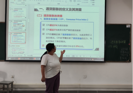 唐姚毓老师的课程主题是通货膨胀,她详细探讨了通货膨胀的根源及其影响,并利用历史数据,生动地描绘了不同种类通货膨胀的特点。这让学生能够清晰地看到通货膨胀对经济和日常生活的实际影响。在授课中,唐老师借助图表和数据模型,明确地揭示了通货膨胀率与其他经济指标的关联。曾夏颖老师在点评时指出,唐老师的讲解条理清晰、内容充实,将通货膨胀这一复杂的概念通过数据和案例的结合变得易于理解。同时,曾老师建议在教学中加入小组作业,鼓励学生自己搜集和分析不同历史阶段的通货膨胀数据,通过实践来加强对通货膨胀的理解。另外,还可以引导学生研究通货膨胀对不同社会阶层的影响,从而提升他们的社会责任感和经济分析技能。