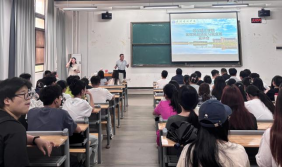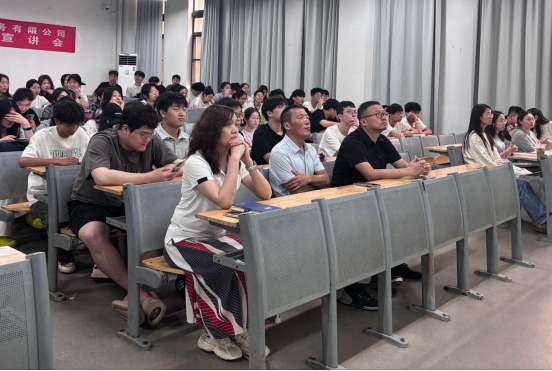 随后,主持人余焱邀请金蝶武汉分公司张博先生发言,张先生指出,金蝶招聘严格要求专业对口,目前各行各业就业压力大,就业困难,各单位对员工素质要求较高,或者是要求经验,对于在校生或者应届生就要求实习经验,所以目前高校毕业生是十分困扰的,而金蝶公司的数智化职业赛道满足了新需求,能够更好地适应未来发展趋势。并且向学生展示了金蝶获取的各项荣誉,其中云服务表现较为亮眼,同时,金蝶目前已建立了区域性服务中心,实现了高质量高水平发展。他表示学生入职金蝶实习能获取很多知识,帮助培养自身成为国家需要的复合型人才,帮助学生规划了发展路径,首先是需要精通软件,其次在项目经历中慢慢积累业务能力与管理水平,获得了学生的一致共鸣。