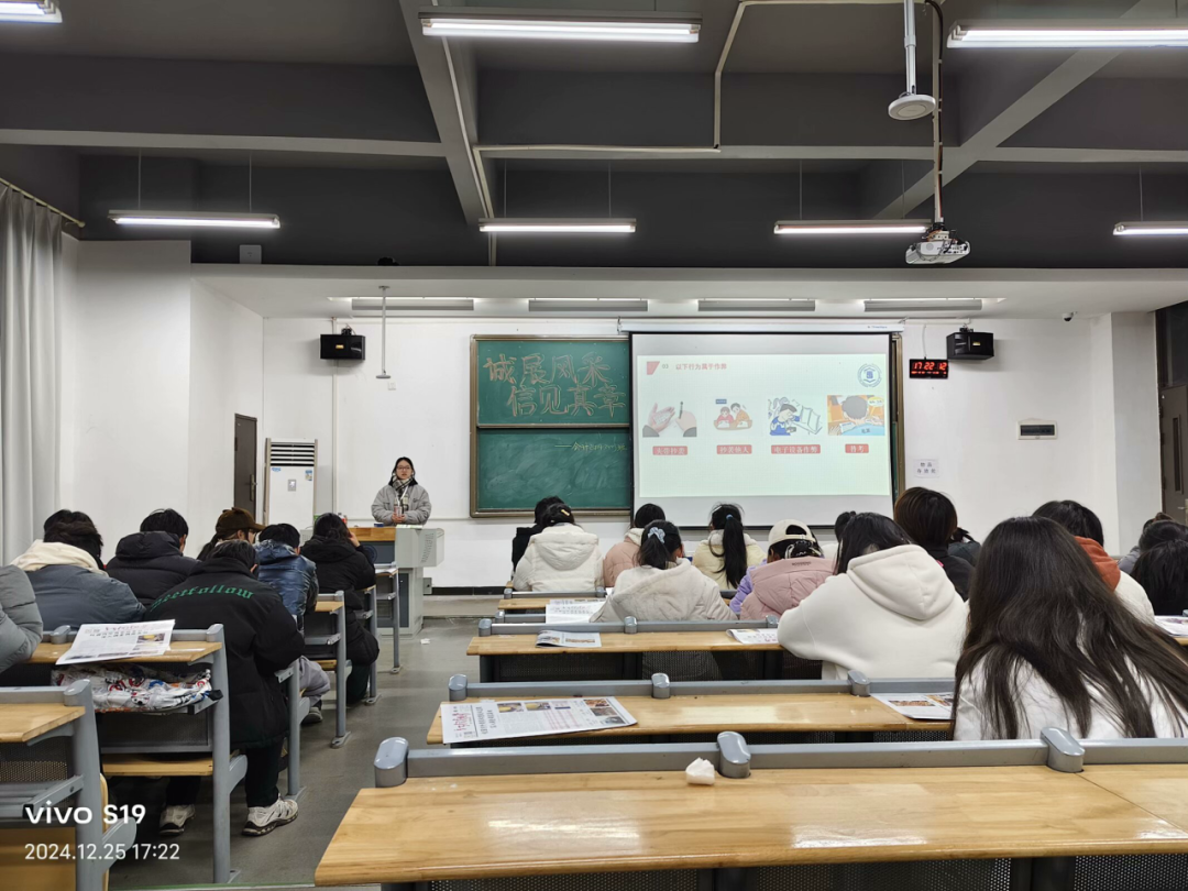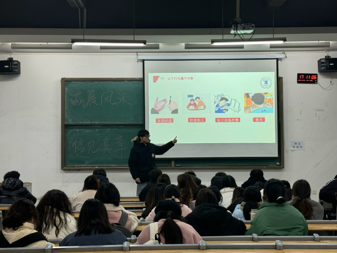诚信,自古以来便是中华民族传承赓续的精神脊梁,是我们为人处世、安身立命的根本准则。临近期末,为进一步增强同学们的诚信意识,树立良好的考风考纪,2024年12月23日至25日,必赢电子游戏网站第七届党员学长团队在各班级组织开展了诚信期末考试主题班会活动。本次活动旨在引导学生树立诚信意识,遵守考试纪律,以积极的态度和真实的水平迎接期末考试。