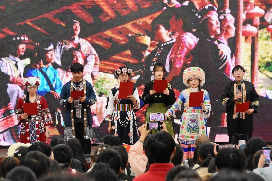 会计2305团支部以青春献礼,共绘华美篇章。来自六个不同民族的同学身穿各具特色的民族服装进行诗朗诵《我的祖国》,表达了他们对祖国深深的热爱与眷恋之情。团结之花,绽放中华,五十六个民族携手并进,用青春的激情与智慧,共同谱写中华民族伟大复兴的新篇章!