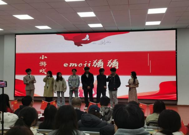 接下来,进入本次活动的第一个互动环节:emoji猜猜。游戏环节中,同学们踊跃上台,积极参与互动,欢呼声与掌声此起彼伏。通过emoji猜历史事件,不仅回顾了历史,告诫会院青年要继往开来,也向大家传播了红色文化,增强了对国家的认同感与爱国情怀。
