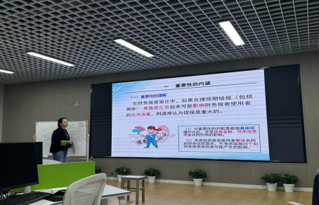 随后,王雪彬老师展示了《审计》课程中审计重要性内容,主要从重要性的内涵、重要性水平的确定以及重要性的运用三方面进行深入讲解。王老师巧妙的将生活中的例子融入课堂,展现了她深厚的教学功底。将难以理解的概念逐步拆解成简单易理解的知识点。使得课堂互动频繁,重难点清晰,课堂逻辑性强。