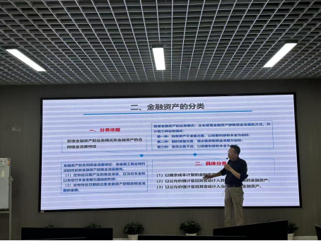 第三个上台展示的是拥有丰富教学经验,深受学生爱戴的陈鸿琦老师,陈老师讲解了《中级财务会计》中的金融资产,详细解读了金融资产的定义以及分类,对金融资产的三种分类进行深入剖析。将课本上晦涩难懂的定义变得简单易懂。陈鸿琦老师的课堂得到评委的一致好评,评委们认为课堂教学内容逻辑性强,课件美观且重点突出。但缺乏课堂思政的内容,建议后期增加。