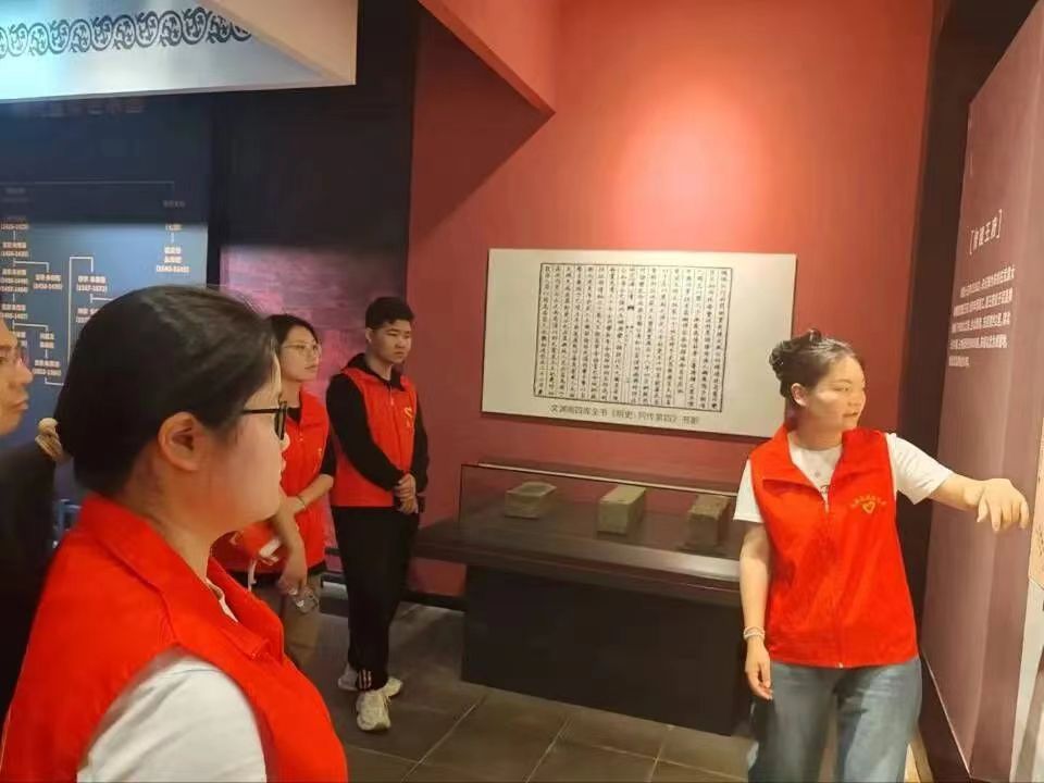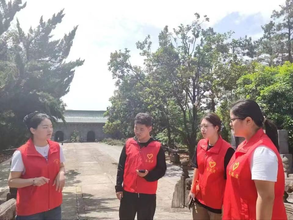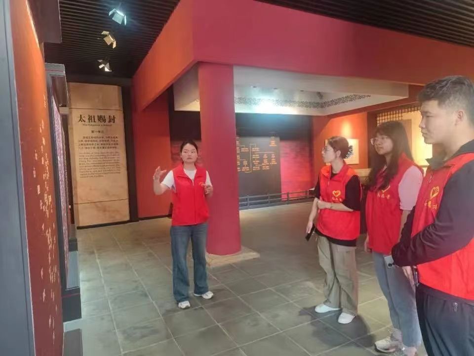 2024年5月12日上午九点半,必赢电子游戏网站的志愿者们出发前往龙泉山风景区。景区讲解员热情的接待了必赢电子游戏网站的志愿者们,在景区管理员汪主任的引导下,同学们来到昭王茔园祾恩殿展厅,了解了明太祖朱元璋的人物关系图和他主持编纂的《皇明祖训》,他告诫子孙“宽以待民、不奢侈度日、不重金厚葬”。其子朱桢严格遵循父亲的训诫,随葬品多为小件明器,瓷器、金银器极少,连腰带都是金镶木,深刻贯彻父亲薄葬的理念。