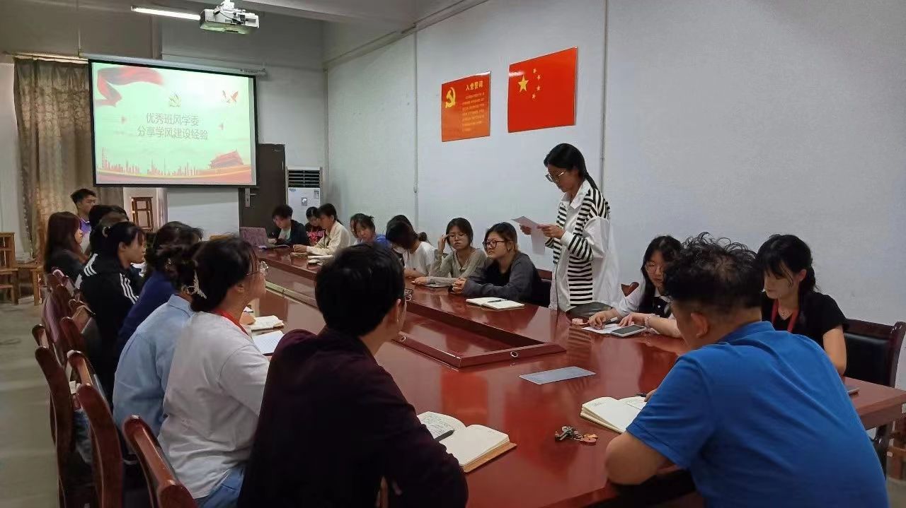会议第四项,由上一学期获得优秀出勤率的班级代表——财管2301班学委周吉言同学分享学风建设经验和做法。她指出自己所在班级的同学们学习态度积极、有自主学习的良好学风,但仍然需要不断改进和完善。同时,她分享了“良好沟通”和“树立榜样”的工作经验,也希望学习各班优秀经验,共同推进学院的学风建设。