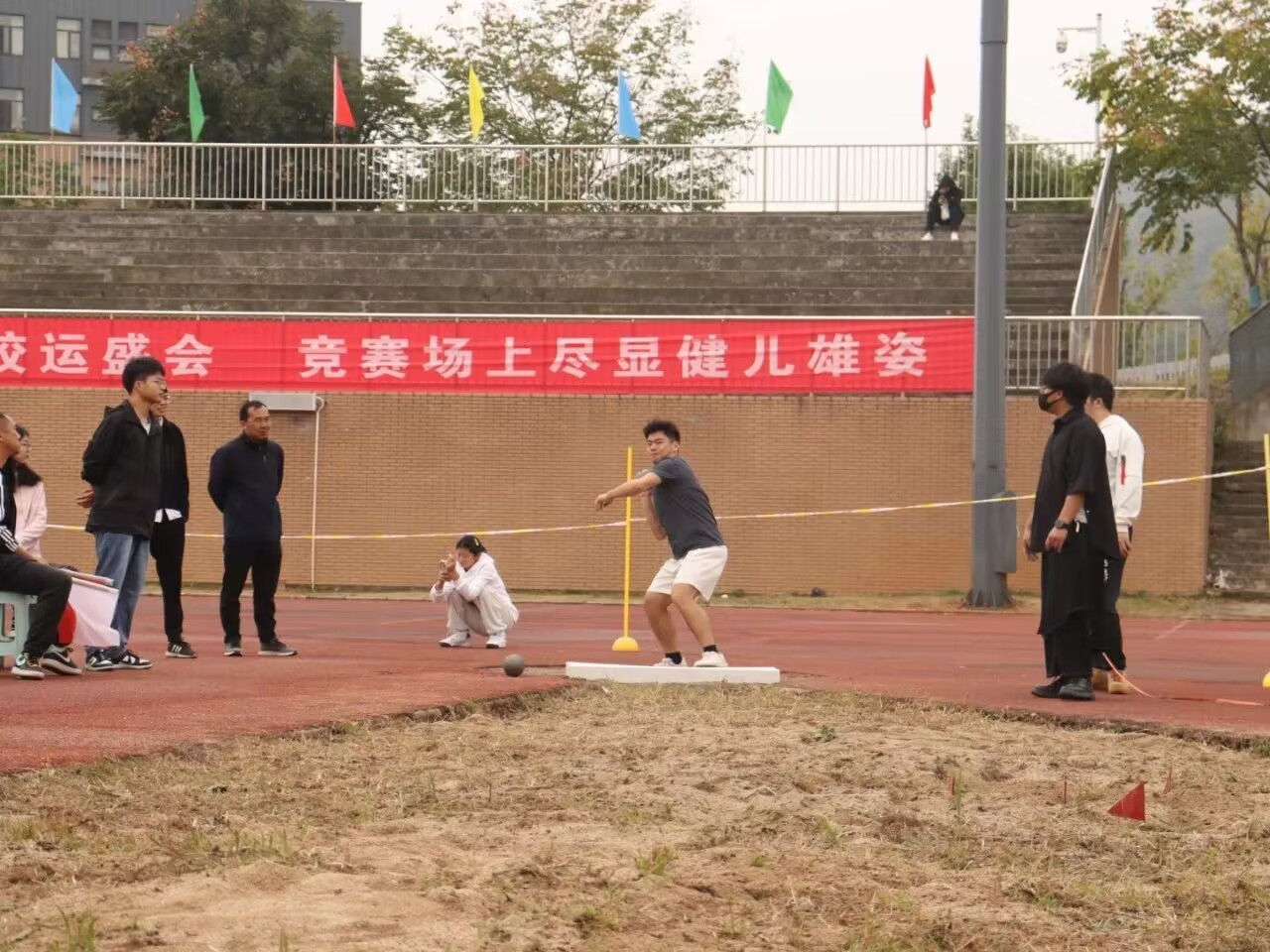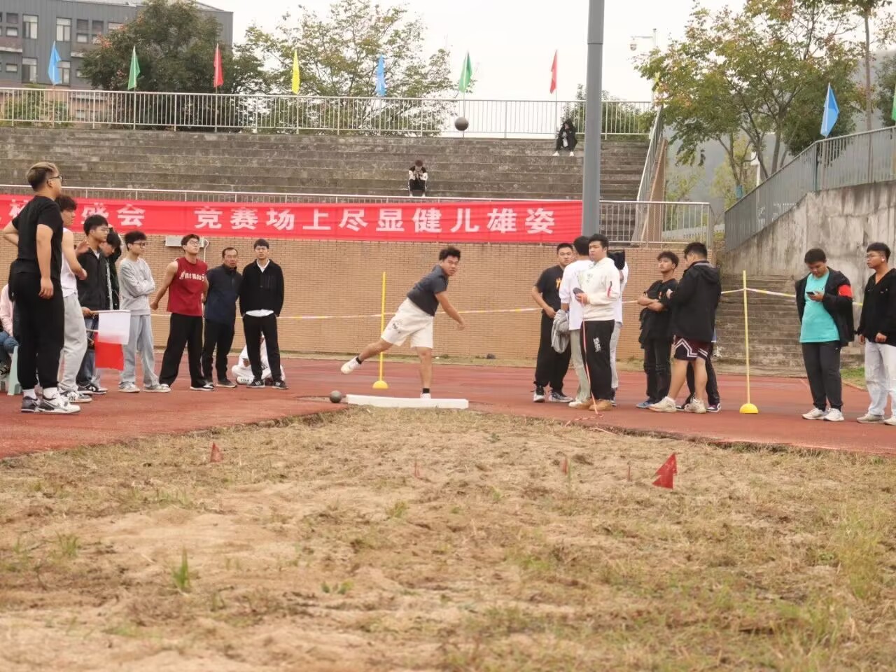 沉甸甸的铅球,寄托着会院青年的希望,奋力一拋的瞬间,一道闪亮的弧线划破美丽的长空,顿时耳旁飘来阵阵欢呼与赞叹。