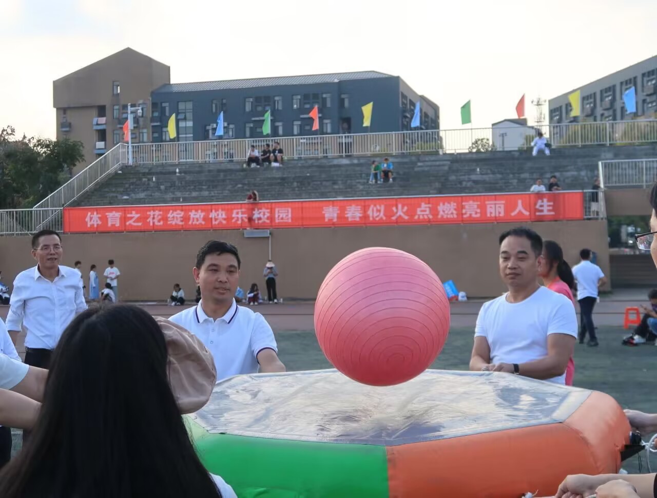 随着一声哨响,教职工运动会率先拉开帷幕。