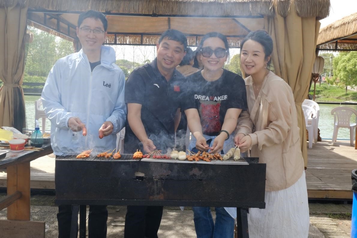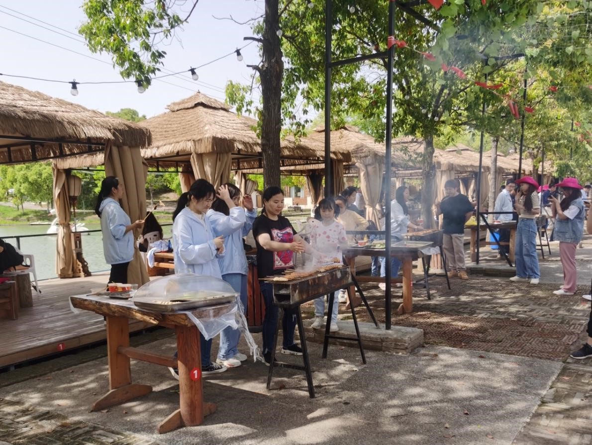 正午时分,大家纷纷叫上新旧好友,五人一组开始自助烧烤午餐。“春江水暖鸭先知,正是河豚欲上时。”各个小组分工合作,喷香的午餐即刻上桌。冉冉炊烟中,没有生活的匆忙,只有悠闲的时光;觥筹交错里,懂得自己的喜好,取悦自己的向往。