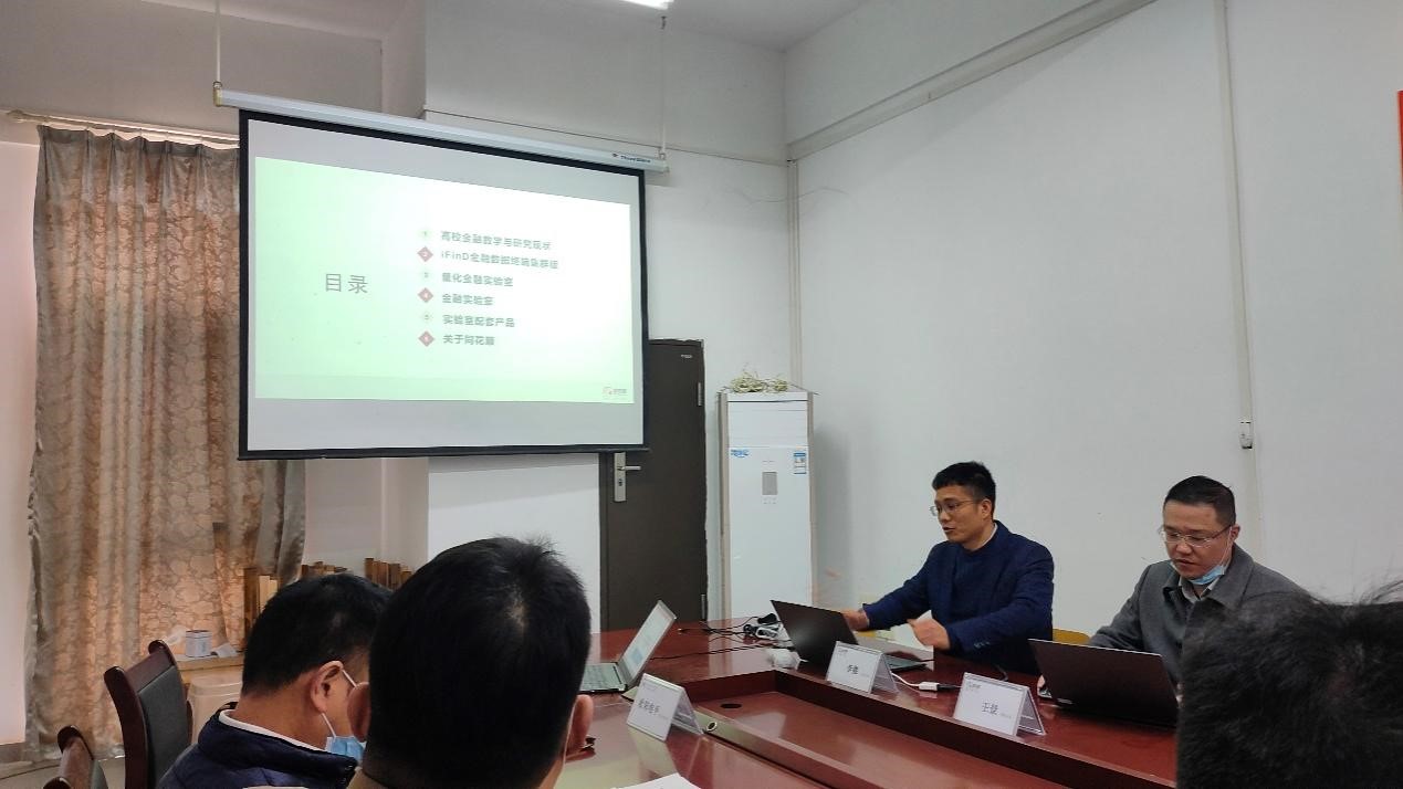 此次研讨会我们邀请到了浙江核新同花顺网络信息股份有限公司武汉分公司高校负责人李能总监及销售总监王景,他们为证券投资交易和财务大数据分析应用,以及量化金融方面的实验室建设方案提供了参考建议。