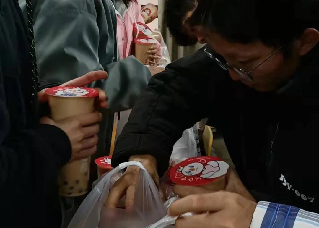 活动中间,朱俊杰老师为大家送来了暖暖的爱心奶茶,每人手捧一杯奶茶,冬意浓浓。学生们纷纷表示,又能学知识又有奶茶喝,做工管专业的学生太幸福了!朱老师说,感谢大家的支持和配合,咱们专业的《房屋建筑学》课程才能成功获批湖北省一流本科课程,同时每年的学科竞赛也是战果累累,希望未来大家能更上一层楼!