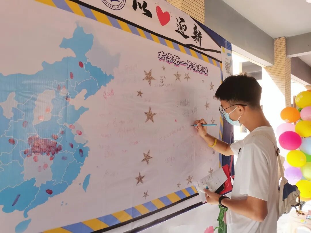 学院还为新生们设置了“家乡打卡点”,新生可在展板上找到自己对应的家乡省份,在地图上按下手印,同时在展板另一侧写下步入大学后对自己的一些期待。同学们虽然来自五湖四海,但我们有幸在晴川相遇,希望在未来的大学时光里,我们都能如同学们在展板上写的那样,演绎属于自己的精彩人生!