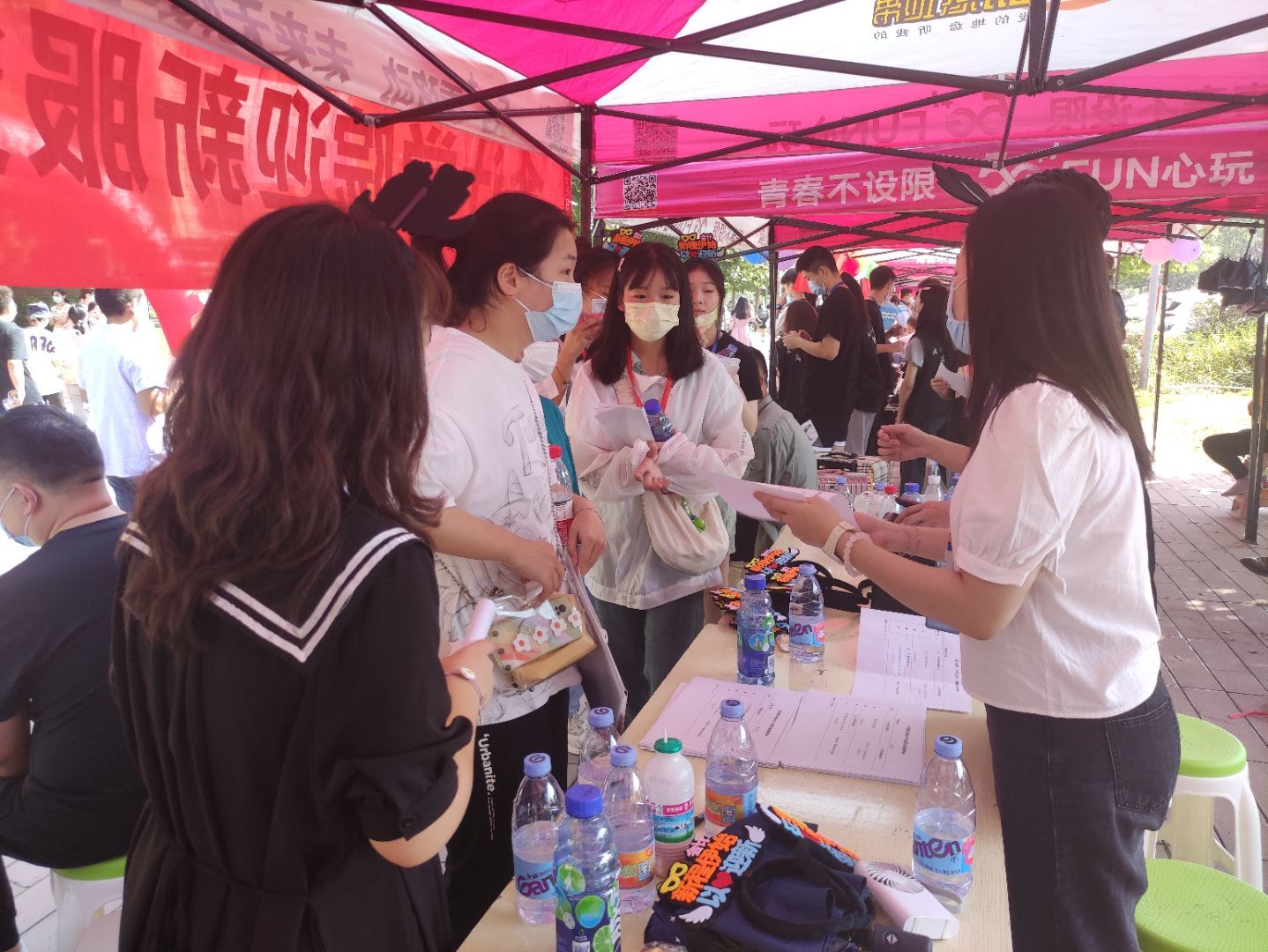 在志愿者的带领下,萌新们来到综合楼一二楼架空层办理入学手续,党员学长们为新生做好报道登记,发放水卡、宿舍凭条和领取军训服凭条。踏入学校大门,一眼可见的是综合楼下的第一个迎新点——一排排红色的帐篷。帐篷下,必赢电子游戏网站的学长学姐们积极热情地引导新生至综一架空层报到、为新生家长们答疑解惑、帮助新生看管行李以及后续宿舍报到服务等工作。