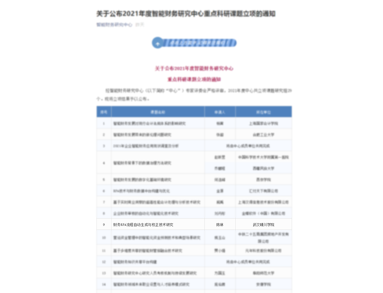 在等待两个半月后,经过中心严格审核审查,陈老师申报的科研课题“财务RPA流程自动生成与校正技术研究”从若干申报项目中脱颖而出,于6月25日正式获批立项。