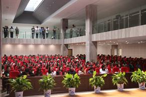 孙院长的主题讲座高屋建瓴、旁征博引、纵横中西、让管理学院18级新生领略了一场别开生面的“开学第一课”,现场座无虚席,孙院长在此过程中一直亲切的与新生同学互动,同学们纷纷响应,大会在温馨积极又不失严肃的氛围中顺利开展。