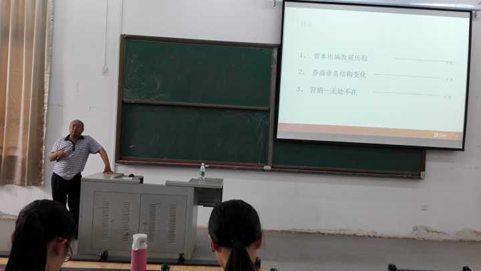 然后,进入讲座正题。这次讲座分为三个部分:第一,资本市场发展历程。胡导师用“摸着石头过河”、“行政管理情绪”、“核准制彰显中介价值”、“‘多层次、注册制’渐行渐近”这四句话形象的说明了96、97年一直到现在的不同时间段的资本市场的发展。第二,券商业务结构变化。从经纪、投行、资管、自营以及小业务五个方面,分别举例说明了业务结构变化之大。第三,胡导师用生活中的事例充分证实了营销——无处不在,他告诫我们要注重生活中的细节,还用之前的总经理与客户见面时的细小举动强调了了解对方的喜好的重要性。他还告诉我们在营销的时候,需要做到换位思考,只有做到自己都想买,才有可能是成功的。