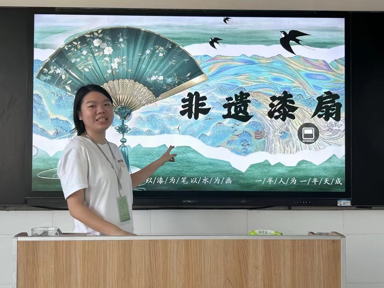 2025年7月15日,湖北省广水市致远学校的教室里墨香与松脂清香交织,颜料的斑斓色彩在阳光下流转。励励晴川志愿服务团队的志愿者们带着精心筹备的非遗文化课程走进课堂,以“漆扇绘古韵,碟盘描童心”为主题,为孩子们开启了一场跨越千年的非遗美学之旅。