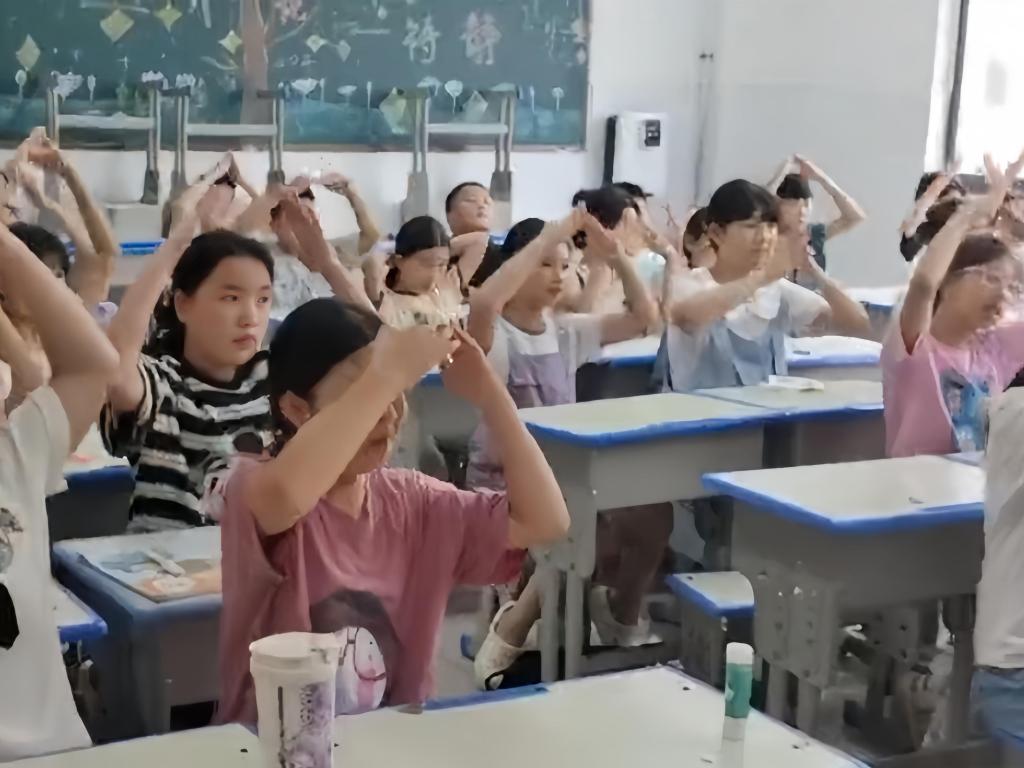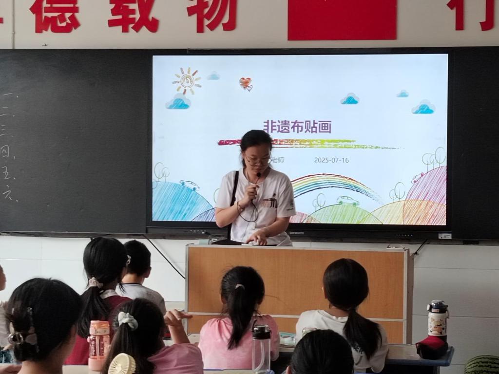 "同学们看,双手比成心形举过头顶,再慢慢展开——这像不像一面迎风招展的国旗?"7月21日上午,湖北省广水市致远学校内,励励晴川志愿服务队的志愿者郑雅婕正带领孩子们跳起红色主题手势舞。14名党员志愿者身着统一队服,以非遗布贴画为载体,将爱国主义教育融入艺术创作,为30余名青少年开启了一场别开生面的红色文化之旅。
