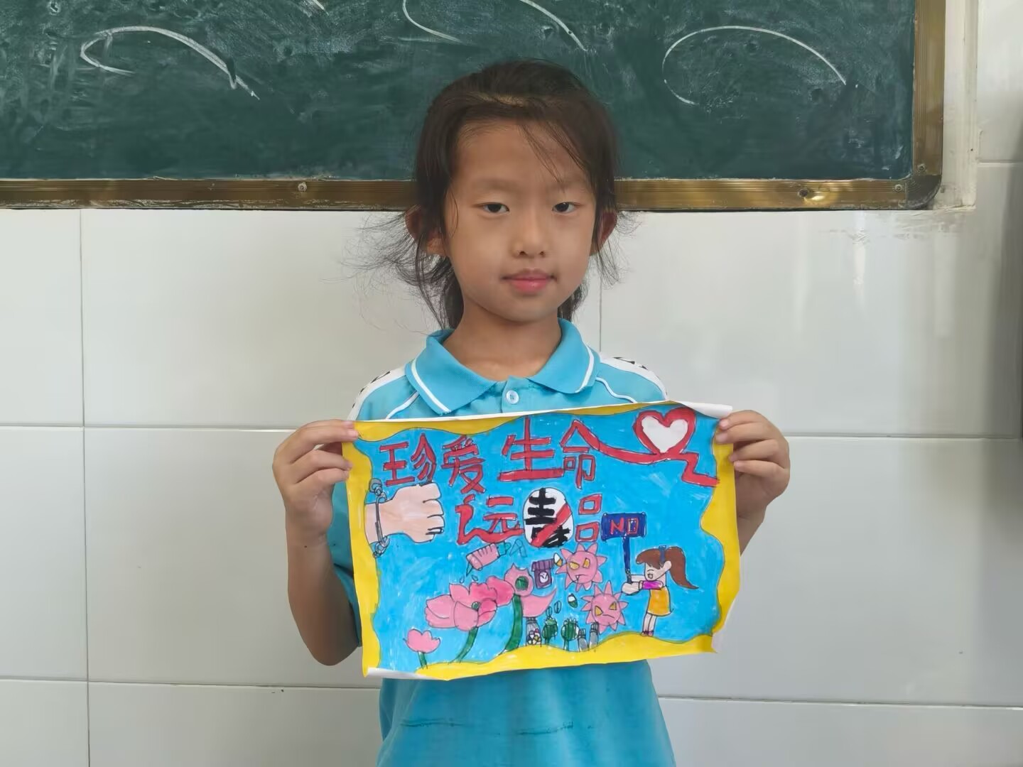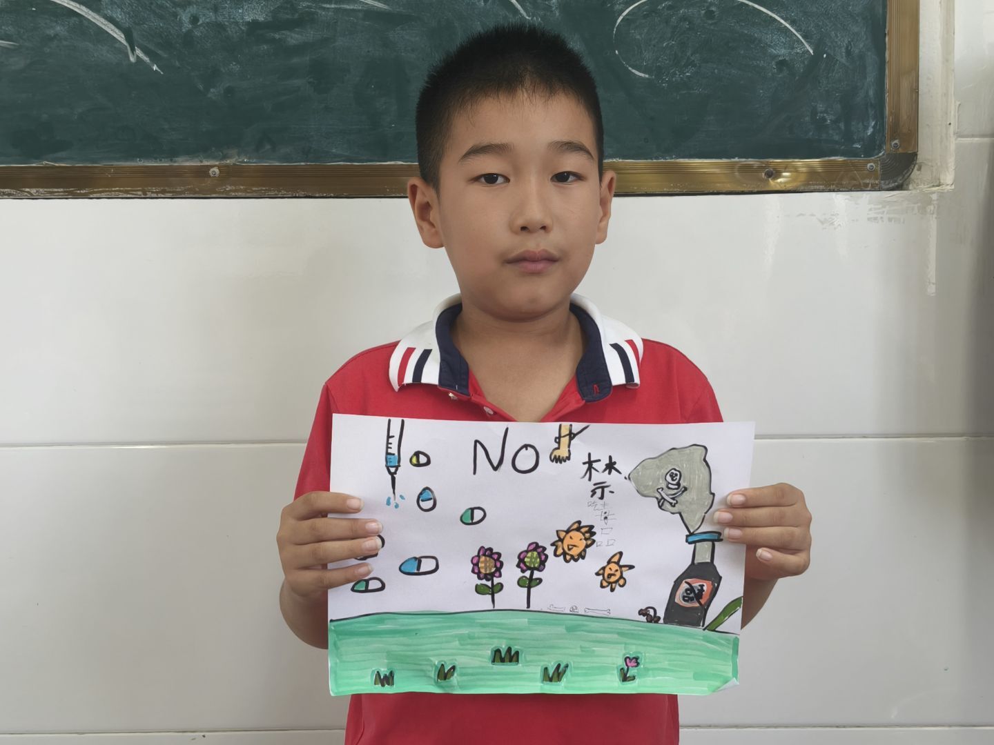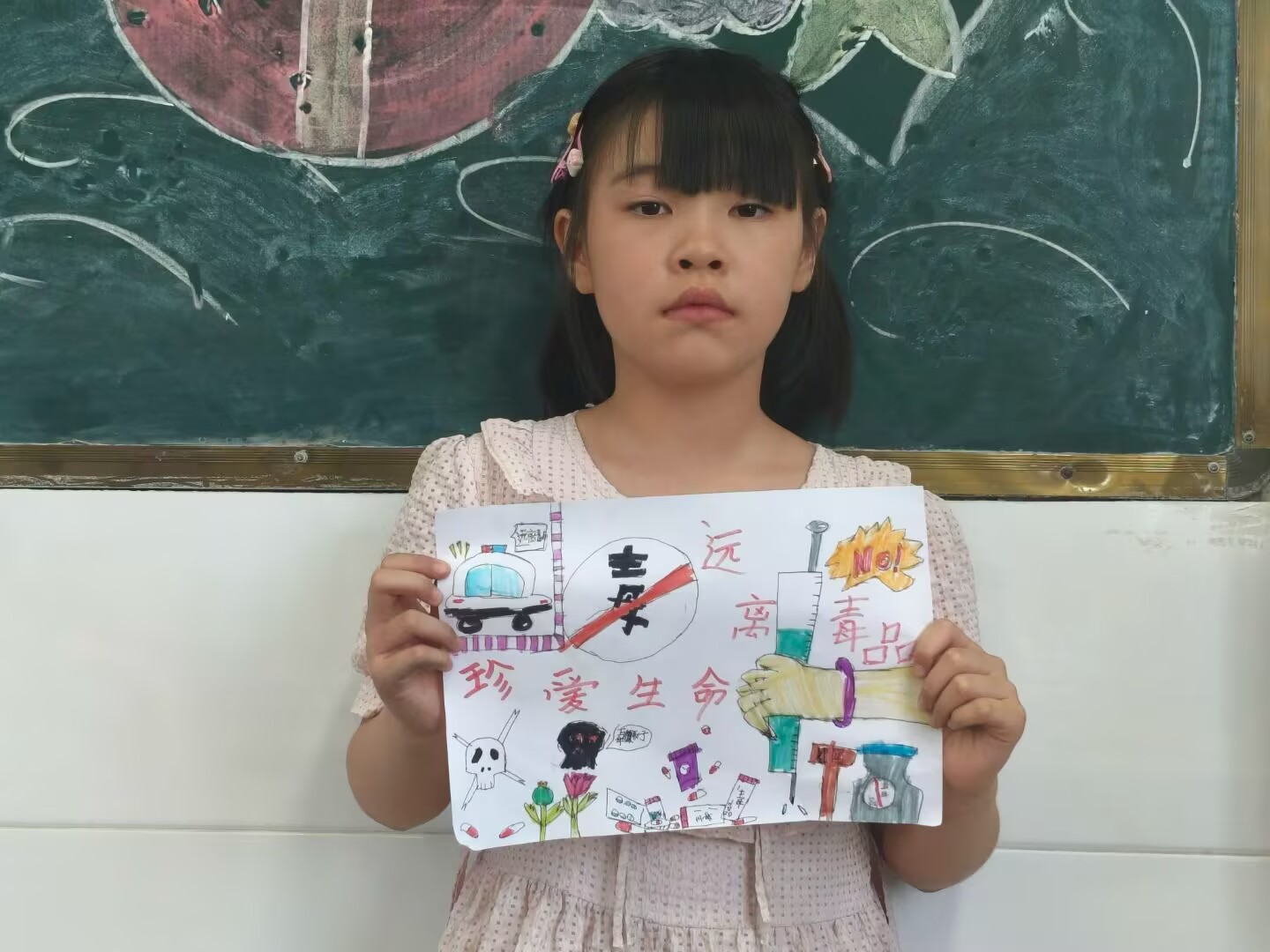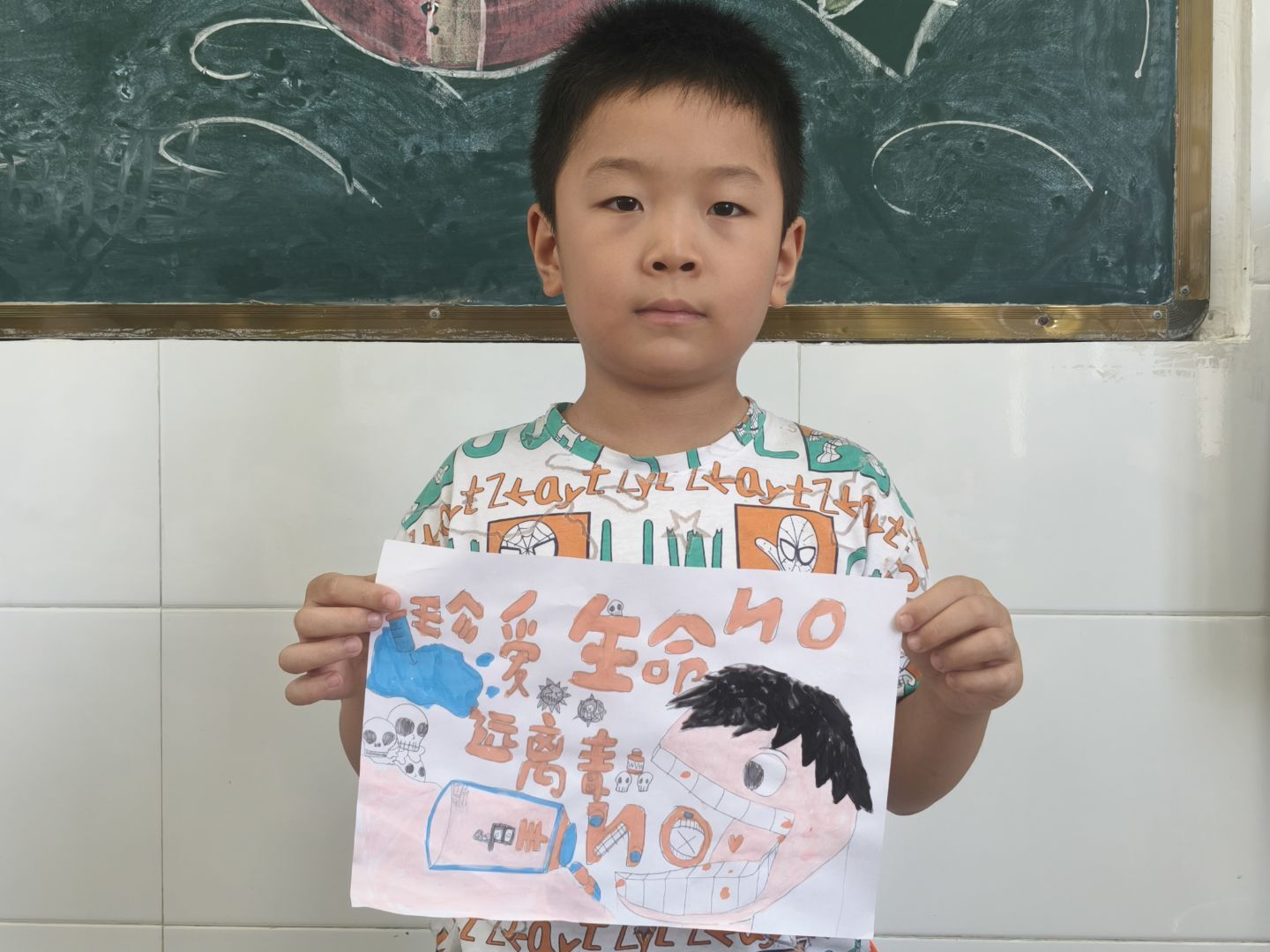 毒品如披着美丽外衣的猛兽,会侵害人们身体、破坏家庭。这一形象比喻让孩子们直观理解禁毒知识。在绘画环节,孩子们以画笔勾勒防毒意识,用稚嫩笔触筑牢禁毒防线。有的绘制“禁止毒品”标志,有的用鲜明色彩对比展现毒品与健康生活的对立,还有的在画作旁写下“珍爱生命,远离毒品”的质朴文字。