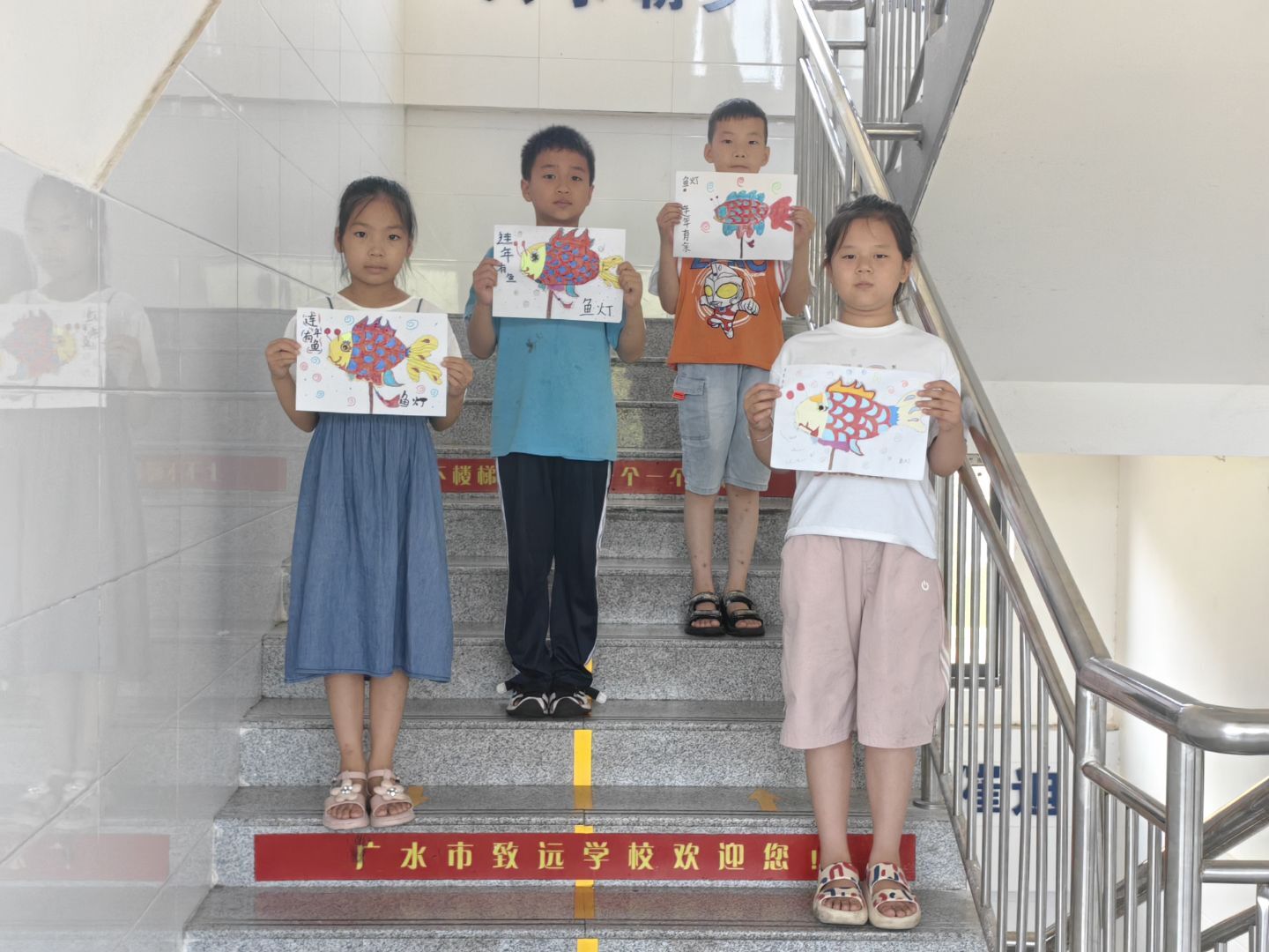 绘画创作环节,孩子们的想象力如脱缰的野马,肆意驰骋。他们用手中的画笔,为鱼灯赋予了新的生命。有的鱼灯色彩斑斓,红、黄、蓝、绿交织在一起,仿佛在水中欢快地游动,要带着孩子们去探索神秘的水底世界;有的鱼灯被画上了梦幻的背景,有闪烁的星星、飘浮的云朵,让鱼灯成了童话世界里的精灵,带着孩子们的梦想在光影中翱翔。每一幅画都充满了童真与创意,是孩子们对鱼灯非遗的独特解读。