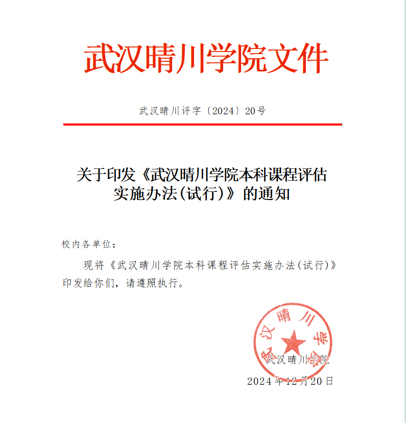 1.学院(部)自评。学院(部)组织本单位课程评估工 作组学习有关文件,准确理解课程评估的基本精神,掌握实 质内涵,总结课程建设成果、经验,凝练特色等。参照《武 汉晴川学院本科课程评估指标体系》(附件),对课程教学 过程和质量做出基本的判断,找出存在的问题,提出解决的 对策,形成课程评估自评报告和相关支撑材料。