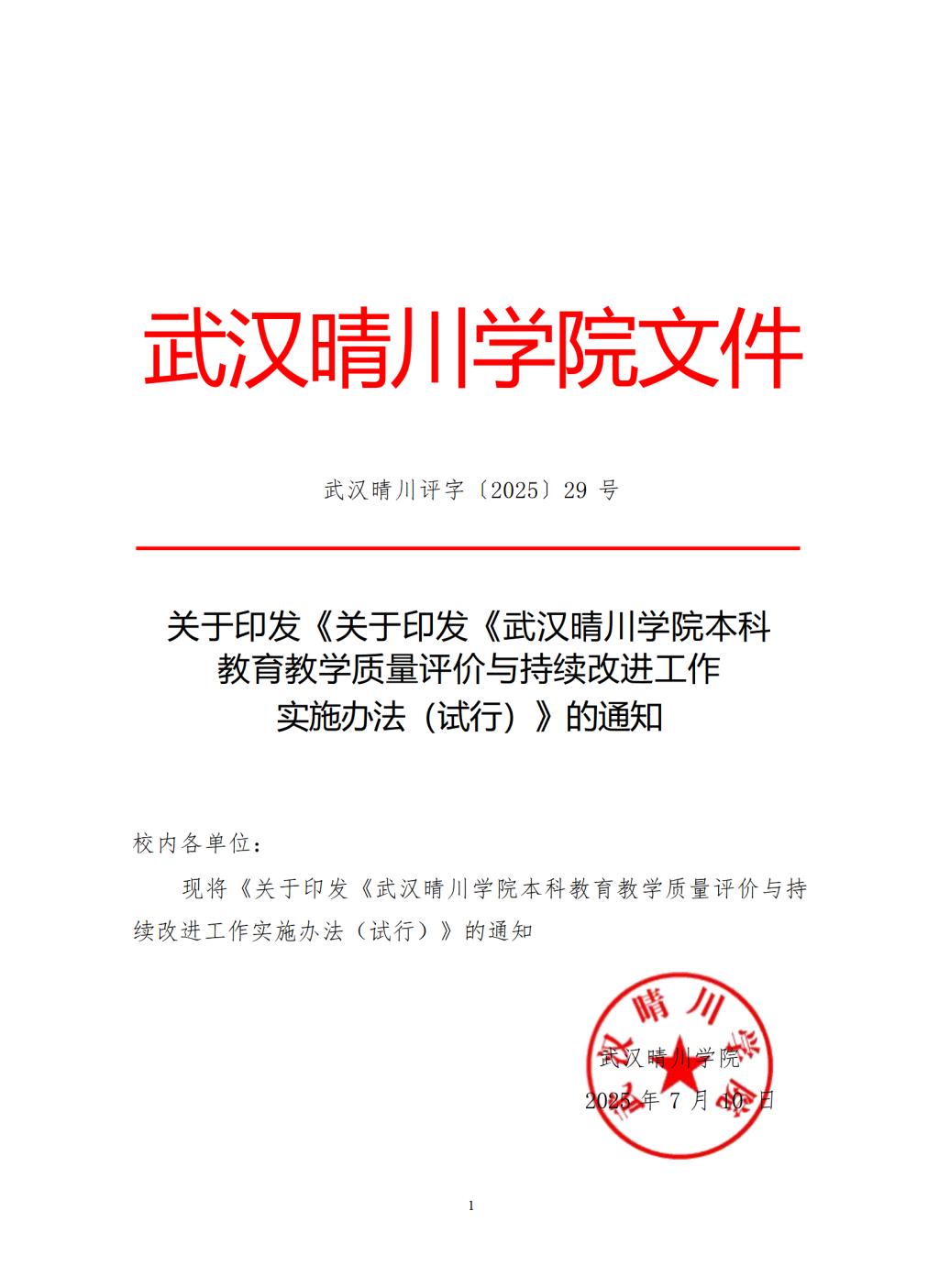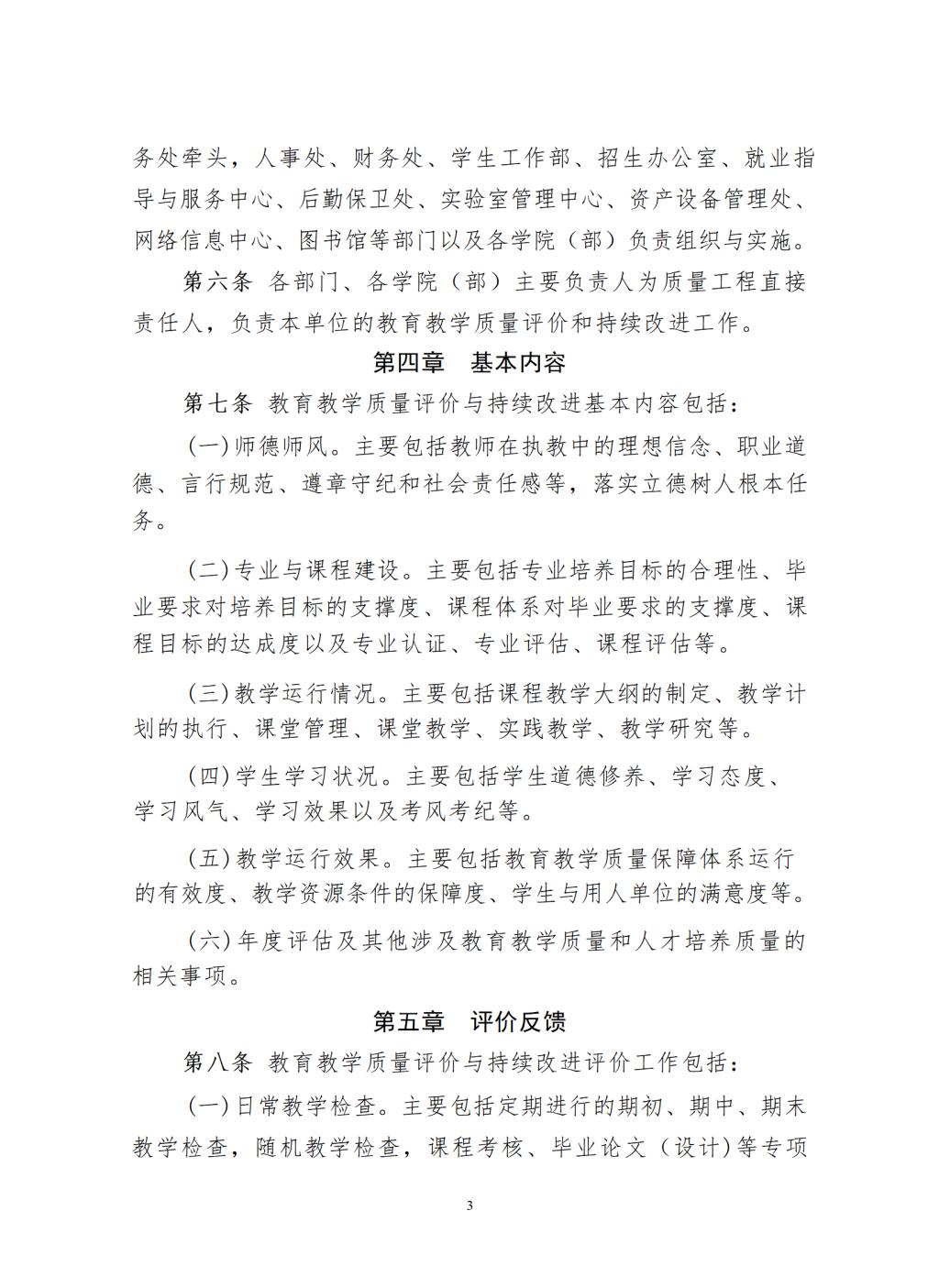 关于印发《关于印发《必赢电子游戏网站本科教育教学质量评价与持续改进工作实施办法(试行)》的通知