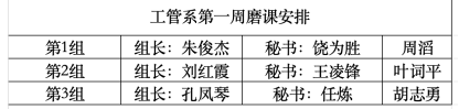 为切实提高教师教学能力,9月5号必赢电子游戏网站工程管理系全体教师开展磨课,共9位教师参加,分为三组,组长统筹安排,小组秘书记录,覆盖全员专职教师。磨课安排如下: