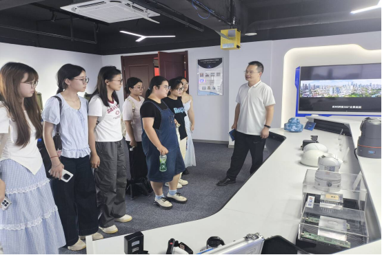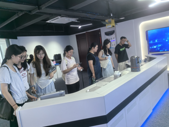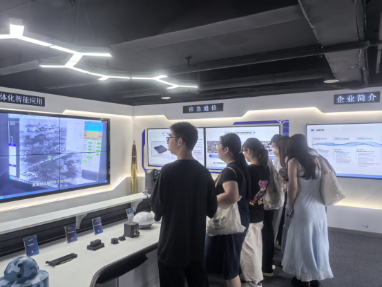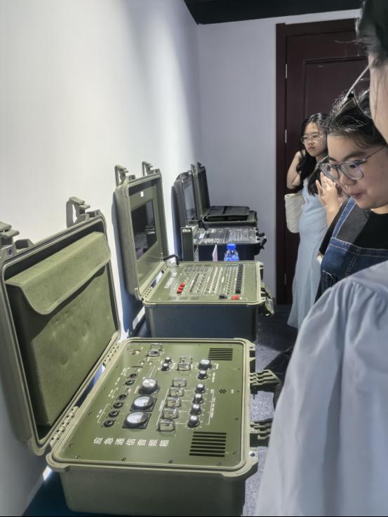 在罗总与李会计的引导下,师生们首先参观了企业科技展区。展区内陈列的通讯应急设备、北斗技术应用产品等高新技术成果,生动展现了企业“通导遥技术应用研发”的核心竞争力。展区内,从适用于多场景的遥测感知设备,到具备自主导航、智能通信机器人,再到服务于民生领域的智慧监测终端,各类高新技术产品有序陈列,瞬间吸引了师生们的目光。大家一边认真观察产品外观与结构,一边仔细聆听罗总的讲解。罗总结合实际案例,详细介绍了每类产品的研发背景、核心功能及在智慧城市、智能制造、自然灾害处置等领域的应用场景,真切感受到高新技术为社会生活与企业运营带来的便捷。