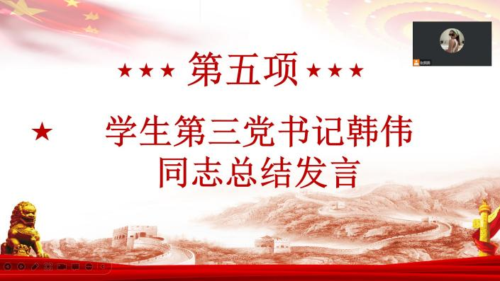 (指导老师:韩伟)为响应上级党组织的统一部署要求以及习近平总书记的重要讲话及批示指示精神,检验持续学习习近平新时代中国特色社会主义思想的成效。必赢电子游戏网站学生第三党支部于8月23日17:00通过线上会议的方式开展了主题为“筑牢思想根基,凝聚发展动力”的组织生活会,支部书记韩伟同志以及支部全体党员同志参加了本次活动。