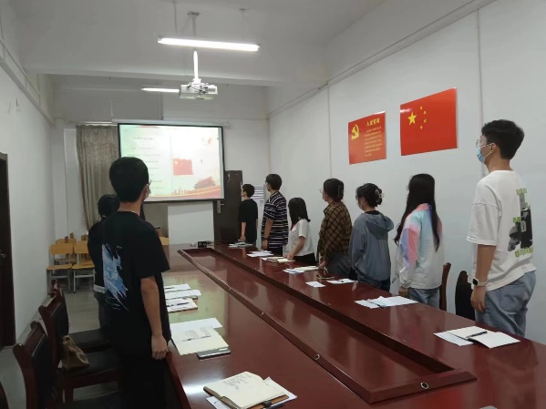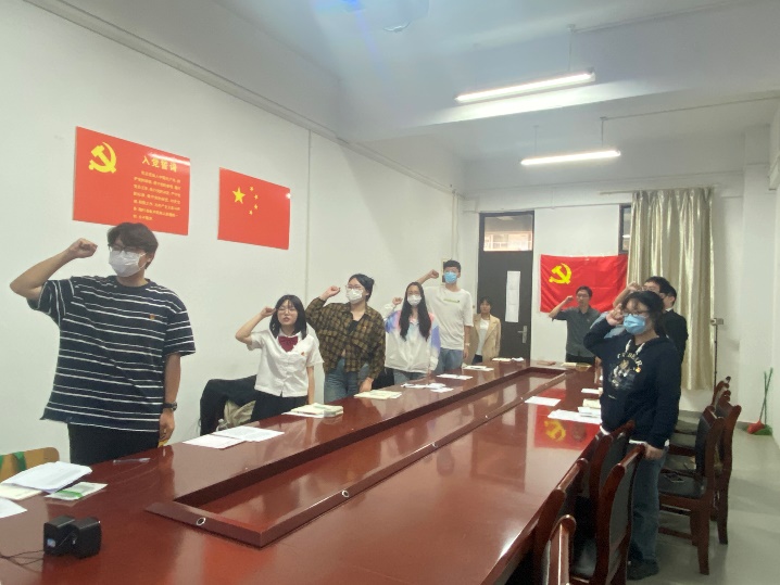 会议第八项,重温入党誓词,全体同志进行庄严的入党宣誓。由李一鸣同志领誓。