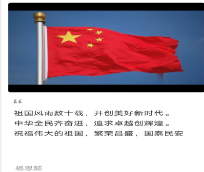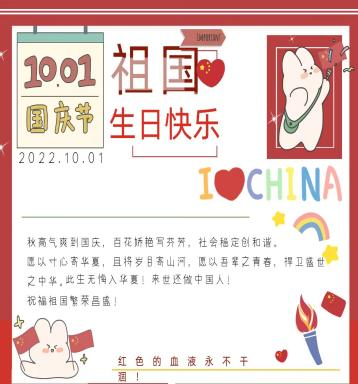 青春献礼二十大。在喜迎党的二十大胜利召开之际,祖国母亲也将迎来73岁华诞,支部成员纷纷送出祝福,制作电子贺卡,手写贺词,并朗诵了爱国诗歌《觉醒年代》 ,为祖国送去最真挚的祝福。