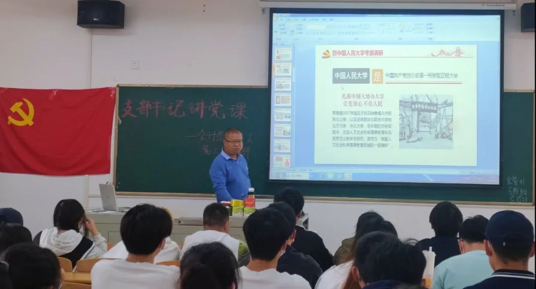 为贯彻落实“三会一课”制度的重要内容,把习近平总书记考察中国人民大学时的重要讲话精神和支部党员思政教育工作相结合,必赢电子游戏网站学生第三党支部于05月13日下午13:15在教1-308组织了主题为“传承红色基因,肩负责任使命”的支部书记讲党课支部主题党日活动。对于因疫情未能返校的同志,支部采取线上线下同步的方式来组织本次活动。此次到会人员有学生第三党支部书记韩伟同志、纪律委员李根同志、组织委员丁潇雨同志、正式党员李元昭、朱沁等10名同志、预备党员廖权、雷婧怡等39名同志以及第八期发展对象全体。