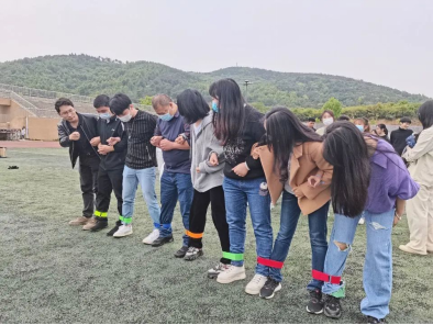 随着郭庆老师宣布趣味运动会正式开始,各个班级便在相关人员带领下有序进入对应比赛项目。本次趣味运动会共有七个项目,分别是:八人九足、跳大绳、夹乒乓球、夹气球跑、呼啦圈传递、吹踩气球、摸桥过河。在游戏开始前,教师队伍也组成了一队队伍,由孙建伟老师带领各位辅导员与场上的班级一起比赛,一起体验各项运动给带来的快乐。