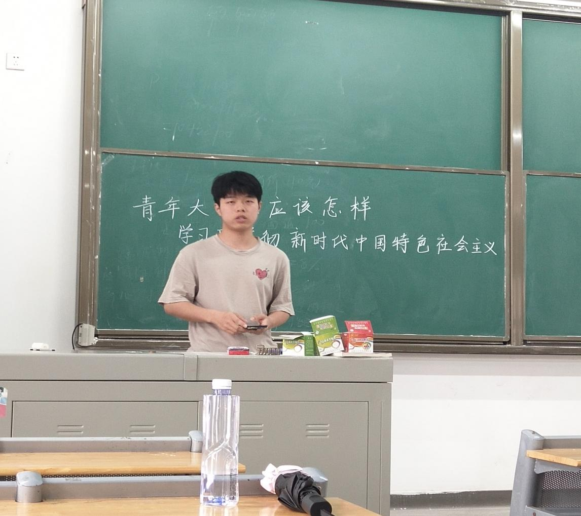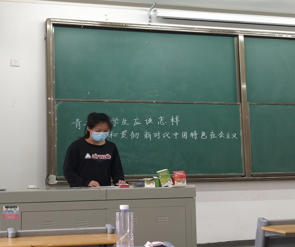 第三组代表刘庆华同学表示出:人的一生只有一次青春。现在,青春是用来奋斗的;将来,青春是用来回忆的”。我们青年大学生要认清新时代的历史方位,坚持用习近平新时代中国特色社会主义思想武装自己,勇做新时代的弄潮儿,努力成长为能担当民族复兴大任的时代新人,为建设社会主义贡献自己的力量。