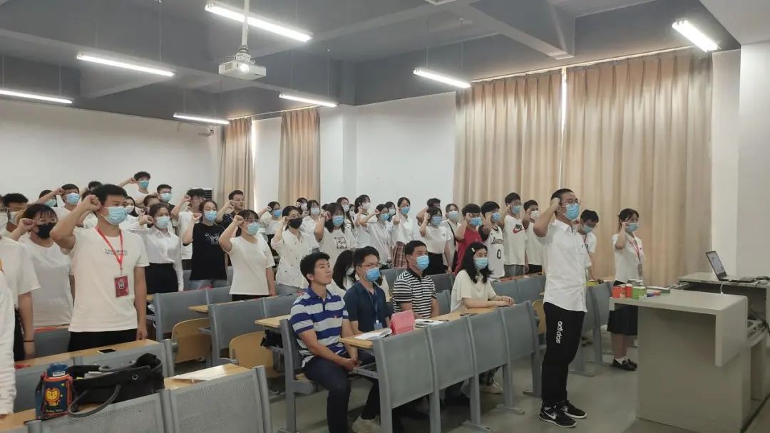 会议第四项:教风学风督察组组长张浩森同学带领全体督察组成员重温誓词。