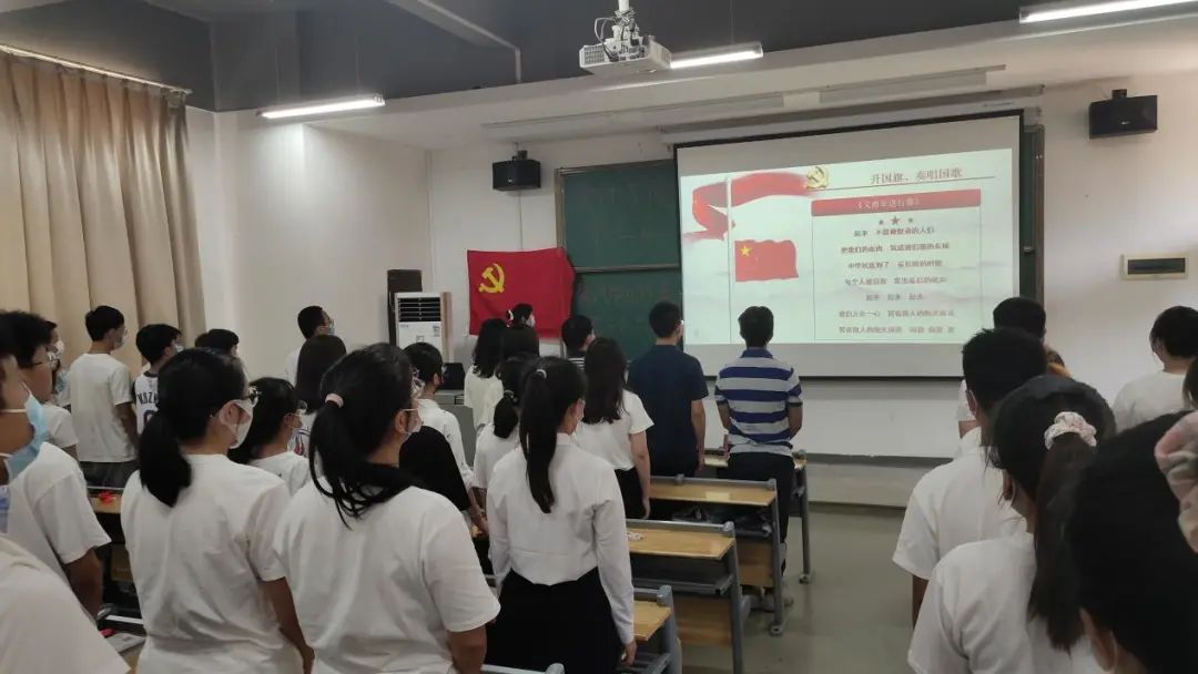 大会开始,会议第一项全体起立,升国旗、奏唱国歌。