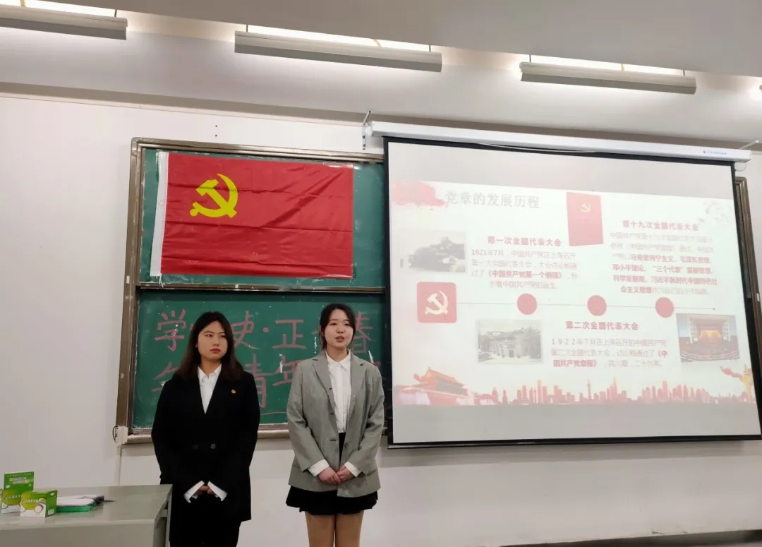 接下来便是激动人心的演讲展示环节,八个小组依次上台展示自己对党史、党章的认识及讨论成果。其中第一组采取男女搭配的形式,生动新颖,为接下来的演讲活动拉开序幕。
