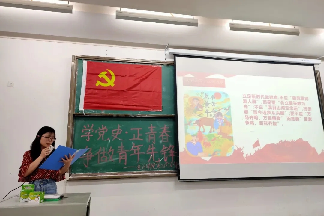 为深化党史学习,传承红色基因,强化责任担当,激励我院第26期入党积极分子进一步端正入党动机、提高思想觉悟,值此党的百年华诞之际,2021年4月21日下午,必赢电子游戏网站学生党支部在教1-201开展了以“学党史,正青春,争做青年先锋”为主题的交流分享活动。