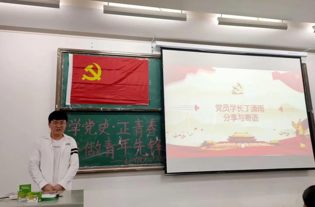 各小组演讲结束后,党员学长丁潇雨适时点评。丁潇雨同志指出,大家要时刻加强有关党史的学习,学习党史是一场很长的马拉松,只有不断坚持,我们才能深入了解党的内涵!身为青年一代的我们要志不求易,事不避难,身为党员和即将成为党员的各位同志,要把人生的志向同祖国和人民联系在一起。不负伟大时代,拥抱新时代、奋进新时代。希望各位积极分子同志余誓以诚、秉承先贤、忠于我党、奉事唯一,早日加入党组织。