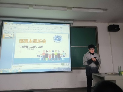 (通讯员:胡玳玮 张欢)2019年12月29日晚7:00,韩东老师带领着18工管、工造、财管在教2-205开展了以“感恩”为主题的交流活动。本次活动内容是对本次获得奖学金的同学予以表彰,并选派奖助学金代表进行感恩演讲,旨在感恩老师,感恩学校,感恩社会,鼓励同学们共同进步。