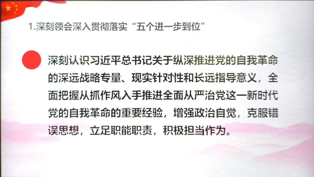 活动期间,全体党员集中学习《中国共产党重大请示报告条例》,重点围绕“五个进一步到位”要求深化理解,从增强政治自觉、健全学习机制、抓好问题整改、做好成果转化、压实责任链条五个方面,明确理论学习与实践落实的结合方向;同时传达中央第三指导组评估反馈会议精神,既充分肯定湖北地区学习教育取得的阶段性成效,也客观梳理当前存在的不足,为后续学习工作提出具体改进要求。此外,活动通过通报典型案例的方式,为党员敲响纪律警钟,进一步强化严守纪律红线的思想自觉;最后,在向丽同志的带领下,全体党员隔着屏幕逐字逐句重温入党誓词,铿锵有力的誓言不仅唤醒了每位党员的入党初心,更坚定了大家坚守信仰、践行使命的责任担当。