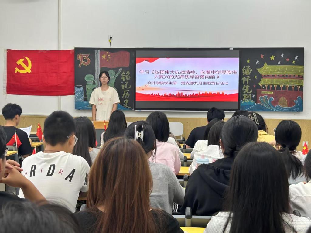 监察组郑雅婕同志围绕“弘扬伟大抗战精神”进行了深入讲述。首先,回顾习近平总书记九三阅兵重要讲话,深知人类命运休戚与共、守望相助。其次,重温“百团大战”、“平型关大捷”历史事件,学习习近平总书记的重要文章《弘扬伟大抗战精神,向着中华民族伟大复兴的光辉彼岸奋勇前进》,深刻领会伟大的抗战精神,是中国人民弥足珍贵的精神财富,一步步铺就民族复兴路。方贤珂、黄兰芳、曾仕静三名同志分别以狼牙山五壮士、平型关大捷、当下科技进步为例,诠释伟大抗战精神之内涵。再次,学习习近平总书记西藏视察重要讲话精神与学习习近平总书记关于教育的重要论述和全国教育大会精神,明确基层党组织战斗堡垒作用。最后,通读《中国共产党重大事项请示报告条例》,明确“四风”问题的严重性,中央八项规定精神及其实施细则的重要性。