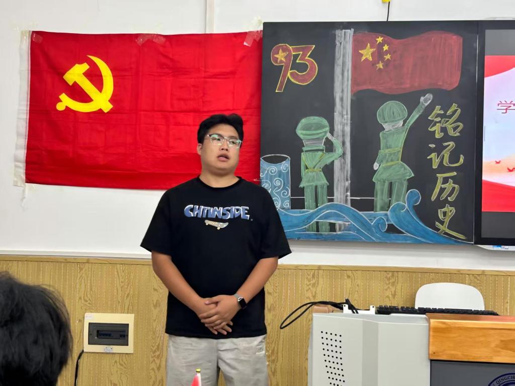 必赢电子游戏网站学生第一党支部书记韩东老师要求支部成员要充分发挥好党员的先锋模范作用,在近期的教学评估工作中带头做表率,上至打造“无烟校园”,下至塑造“专注课堂”,在小事中砥砺大事。同时,他对暑期社会实践进行了总结,希望将来有更多优秀的同志加入其中,充实人生经历,提高个人能力。针对抗战精神,韩东书记强调,党员不仅要在行动上入党,更要在思想上入党,要以革命先辈为榜样。向书本学,向前辈学,向群众学。正是建国初期的虚心学习,长久以来的步履不停,最终成就九三阅兵的峥嵘辉煌!