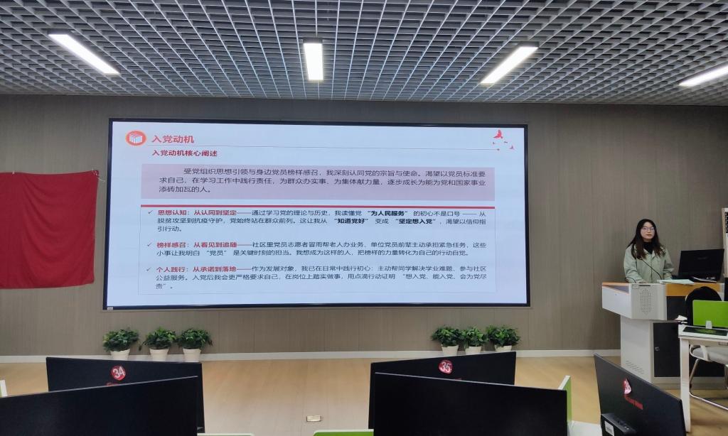 本次活动的重点是发展对象思想汇报环节,大家紧扣 “传薪火育新人 守初心引航向” 主题,以叶青、张文洁为代表的两位同志,以自身经历为笔,书写红色传承与初心践行的青春答卷:
