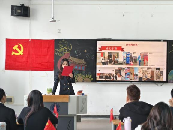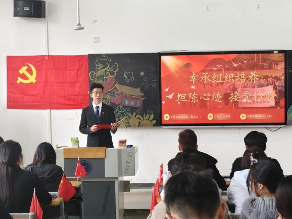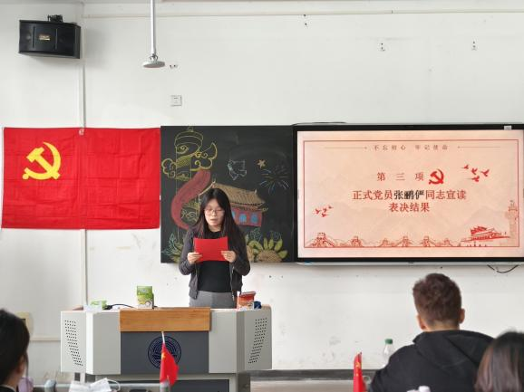 刘成茂、耿昌盛等六位同志依次针对家庭情况,入党动机、先锋事迹等进行汇报。汇报结束,韩东书记对以上同志的政审情况进行汇报。随后徐梓凯老师与胡璐璐老师对以上同志的日常表现进行客观评价,并一致认为以上同志具备预备党员条件。随后,由全体正式党员同志进行举手表决,并由正式党员胡雨萌宣读表决结果,全体正式党员一致同意以上同志由发展对象转为预备党员。