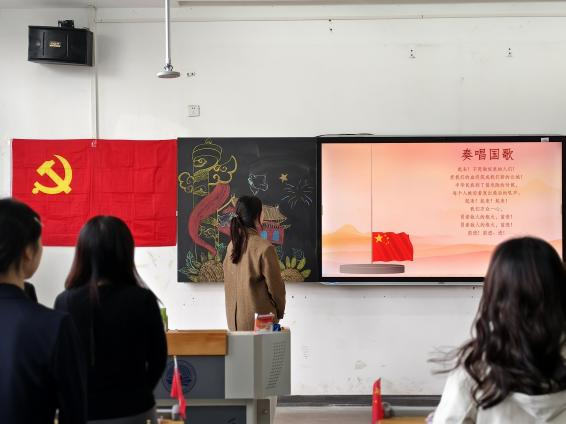 全体党员肃立,在国歌中注视五星红旗冉冉升起。铿锵的旋律激荡人心,彰显着每一位党员践行初心、勇担使命的坚定决心。