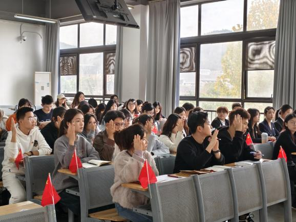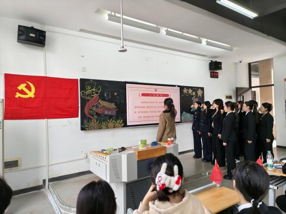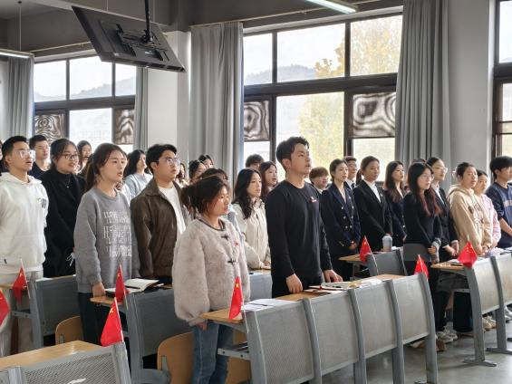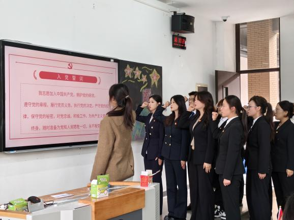 在必赢电子游戏网站学生第一党支部副书记潘星茹同志的带领下,新一批党员和预备党员面对党旗,高举右拳,庄严地进行入党宣誓。铿锵有力的誓言回荡现场,既是对入党初心的回溯坚守,更是对使命担当的庄严承诺,让每一位党员深刻接受党性淬炼和精神洗礼。