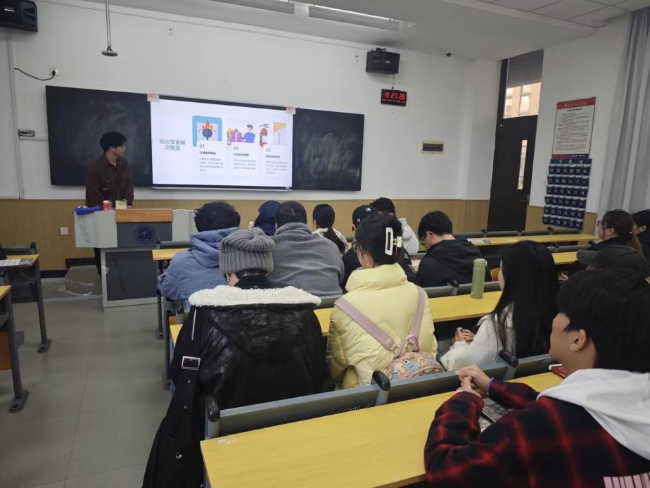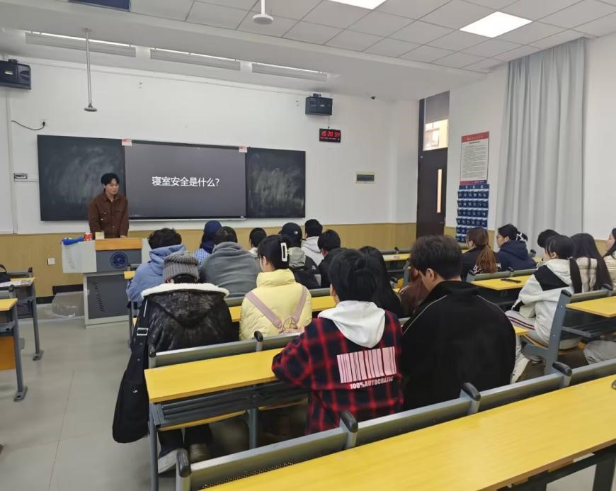 接下来,邓世通同学介绍了我班寝室安全检查与管理制度,包括:1.明确寝室长职责,寝室长负责监督寝室成员遵守安全规定,定期检查电器使用情况,确保无违规行为。2.建立安全检查小组定期对寝室进行安全检查,及时发现并解决问题。3.制定火灾、盗窃等紧急情况下的应急预案,确保每位学生都清楚逃生路线和应急措施。同学们需要严格遵守校园安全规定,学习应急处理技能和增强自我管理能力。