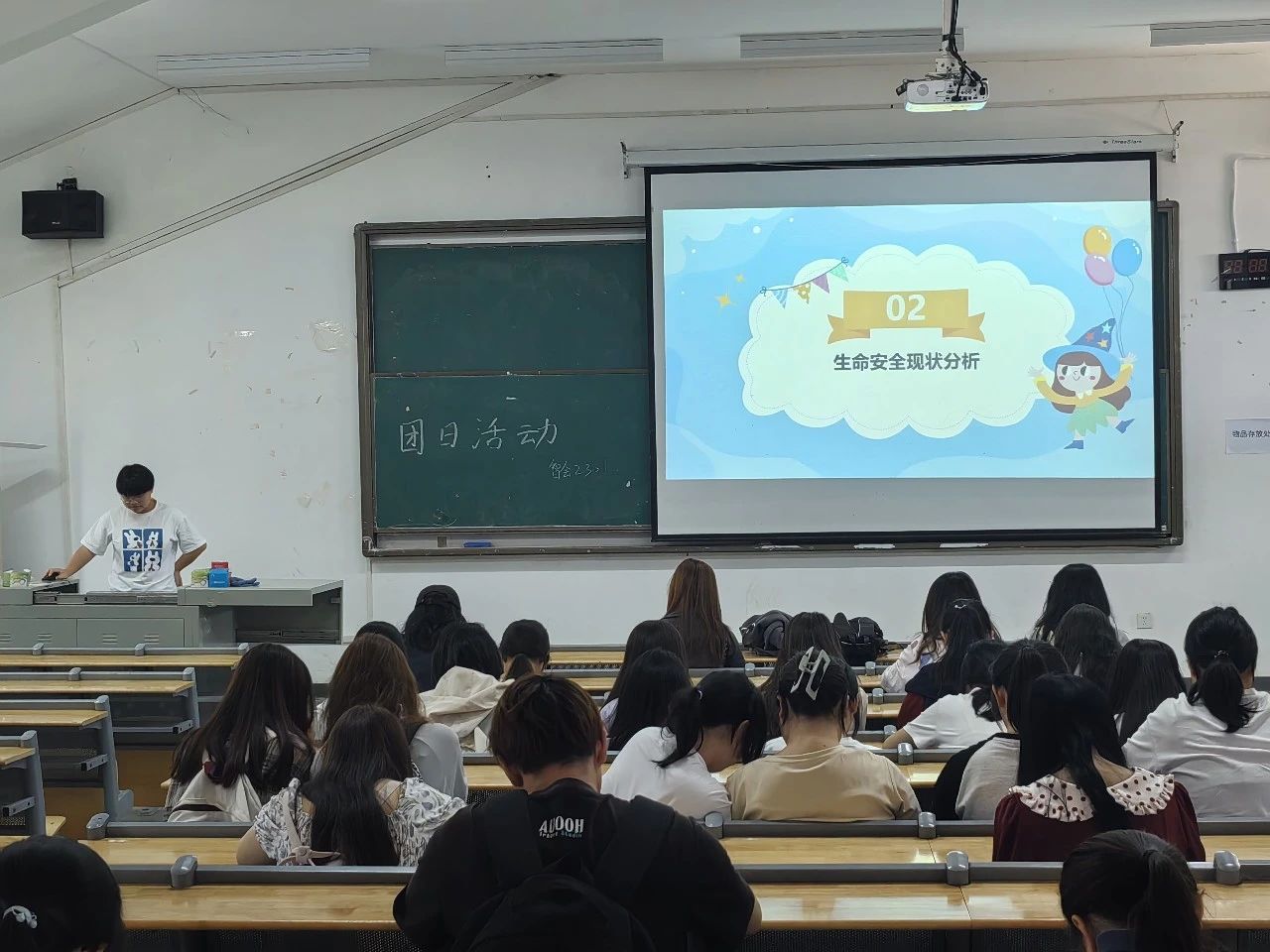 为了引导青年学生深入思考生命的意义,学习如何保护自己和他人的生命安全,进而树立起积极向上、热爱生命的人生态度,从而共同营造一个安全、和谐、充满爱与关怀的校园环境。智会2301团支部于2024年5月8日在教1-501举办了以“闪耀青春,珍视生命”为主题的团日活动。本次活动由团支书刘栩梦同学主持,智会2301团支部全体同学参加。