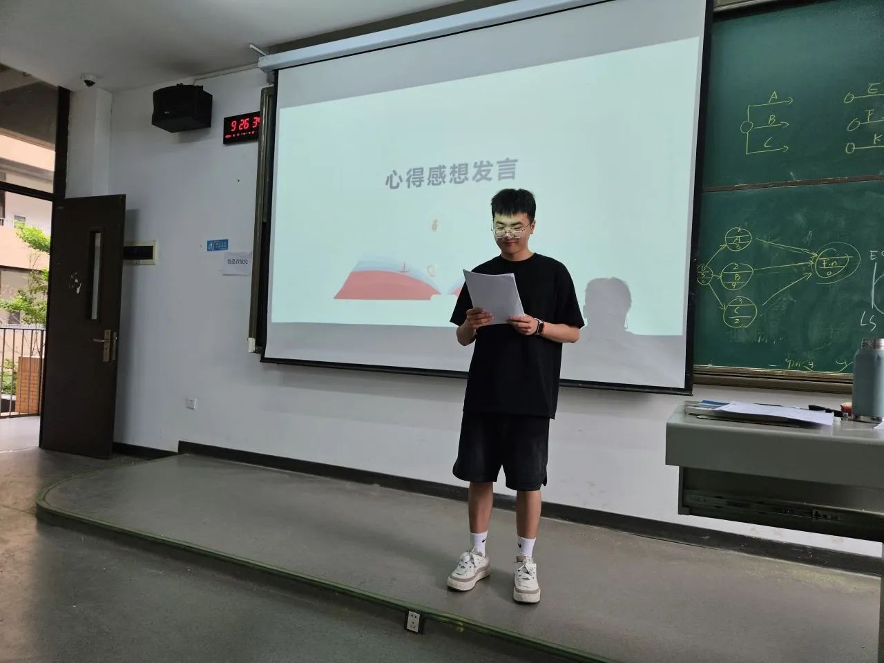 最后,辅导员李根老师对班会进行总结发言:当今的中国是急速发展的中国,中国正在以不可思议的速度成为全球发展的中坚力量,当今时代正式需要你们青年人的时代,目前的经济下行只是暂时的,作为青年大家应该对自己有信心对自己的国家有信心,你们定会有自己的一片广阔的舞台。